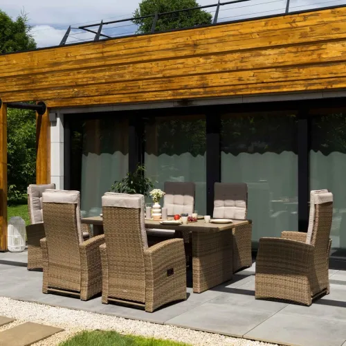 Це не просто садові меблі - це готова зона відпочинку, яка змінює ваш простір і спосіб проведення часу. Більше не потрібно шукати окремо садові столи, садові стільці чи садові лавки - ви отримуєте повноцінний комплект садових меблів для шести осіб.