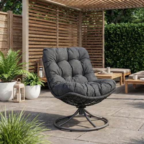 Поворотне крісло-кокон Melia чорного кольору - це більше, ніж просто меблі. Це ваш особистий простір відновлення, де можна сховатися від щоденної метушні, видихнути й нарешті відчути справжній комфорт. Знайомо, коли є тераса чи балкон, але немає місця, де хочеться залишатися довше? Саме тому все більше людей обирають саме крісло кокон - воно створює відчуття затишку, приватності та повного розслаблення. Це той самий момент, коли звичайний відпочинок перетворюється на ритуал.